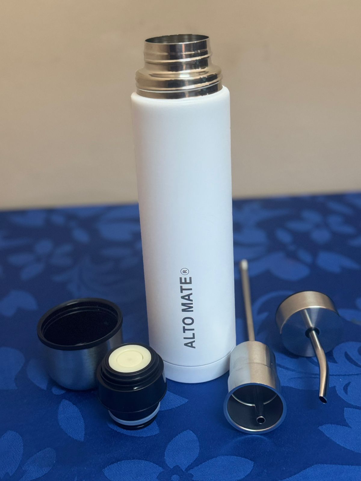 Siempre usaba termo y mate por separado. Con ALTO MATE me simplifiqué la vida, lo llevo al trabajo y me dura el agua caliente por horas.